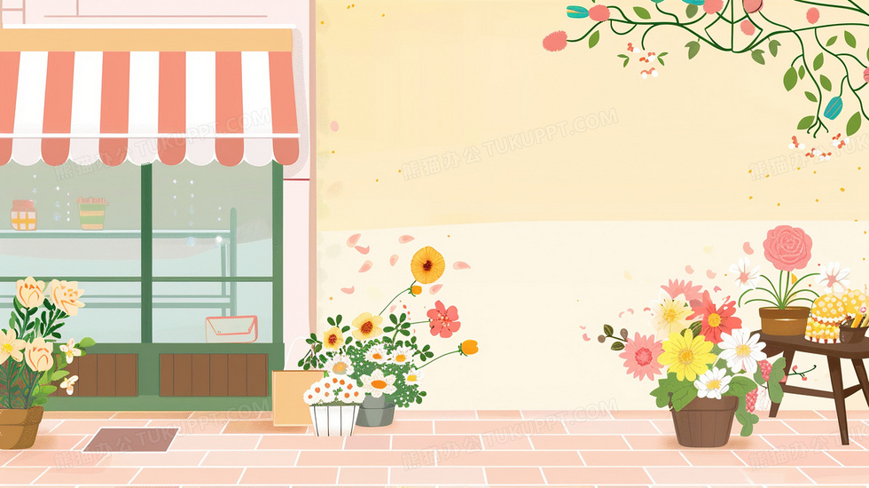 本作品内容为卡通花店电商促销宣传消费背景, 格式为 jpg, 大小2 MB, 图片尺寸为2912 x 1632, 作品中背景图片无需修改, 源文件无水印,可以直接使用, 欢迎使用熊猫办公。 如认为平台内容涉嫌侵权,可通过邮件:tousu@tukuppt.com提出书面通知,我们将及时处理。