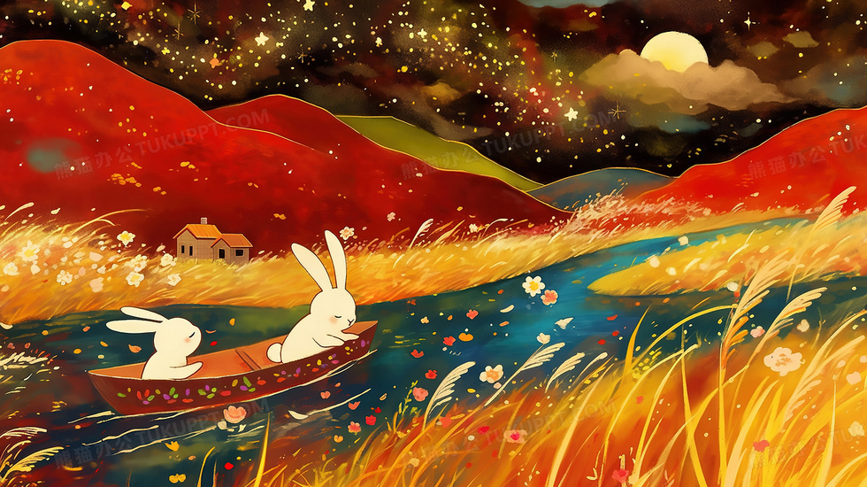 本作品内容为卡通天空兔子小船房屋夜晚梵高风格插画, 格式为 jpg, 大小4 MB, 图片尺寸为2912 x 1632, 源文件无水印, 欢迎使用熊猫办公。 如认为平台内容涉嫌侵权,可通过邮件:tousu@tukuppt.com提出书面通知,我们将及时处理。