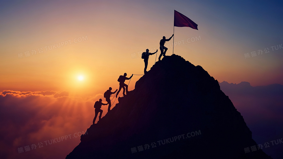 本作品内容为齐心协力登顶背景, 格式为 jpg, 大小2 MB, 图片尺寸为2912 x 1632, 作品中背景图片无需修改, 源文件无水印,可以直接使用, 欢迎使用熊猫办公。 如认为平台内容涉嫌侵权,可通过邮件:tousu@tukuppt.com提出书面通知,我们将及时处理。