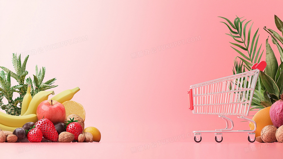 本作品内容为绿色食品果蔬购物车背景, 格式为 jpg, 大小2 MB, 图片尺寸为2912 x 1632, 作品中背景图片无需修改, 源文件无水印,可以直接使用, 欢迎使用熊猫办公。 如认为平台内容涉嫌侵权,可通过邮件:tousu@tukuppt.com提出书面通知,我们将及时处理。