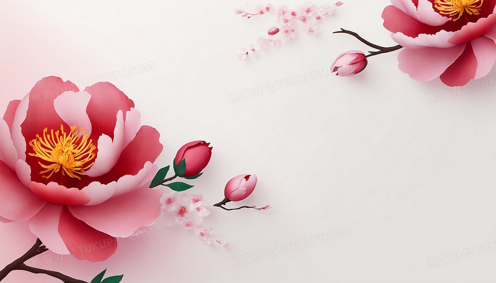 本作品内容为红色牡丹鲜花背景, 格式为 jpg, 大小8 MB, 图片尺寸为5376 x 3072, 作品中背景图片无需修改, 源文件无水印,可以直接使用, 欢迎使用熊猫办公。 如认为平台内容涉嫌侵权,可通过邮件:tousu@tukuppt.com提出书面通知,我们将及时处理。