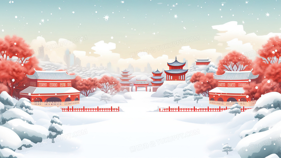 本作品内容为冬季中国风雪景插画, 格式为 jpg, 大小5 MB, 图片尺寸为2912 x 1632, 源文件无水印, 欢迎使用熊猫办公。 如认为平台内容涉嫌侵权,可通过邮件:tousu@tukuppt.com提出书面通知,我们将及时处理。