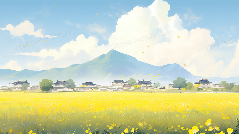 本作品内容为春天油菜花海风景插画, 格式为 jpg, 大小2 MB, 图片尺寸为2912 x 1632, 源文件无水印, 欢迎使用熊猫办公。 如认为平台内容涉嫌侵权,可通过邮件:tousu@tukuppt.com提出书面通知,我们将及时处理。