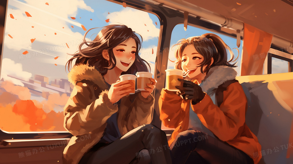 本作品内容为卡通人物女孩出行旅游列车车厢喝咖啡秋天插画, 格式为 jpg, 大小5 MB, 图片尺寸为2912 x 1632, 源文件无水印, 欢迎使用熊猫办公。 如认为平台内容涉嫌侵权,可通过邮件:tousu@tukuppt.com提出书面通知,我们将及时处理。