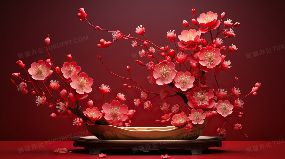 本作品内容为2024新年龙年喜庆浮雕花卉插画, 格式为 jpg, 大小5 MB, 图片尺寸为2912 x 1632, 源文件无水印, 欢迎使用熊猫办公。 如认为平台内容涉嫌侵权,可通过邮件:tousu@tukuppt.com提出书面通知,我们将及时处理。