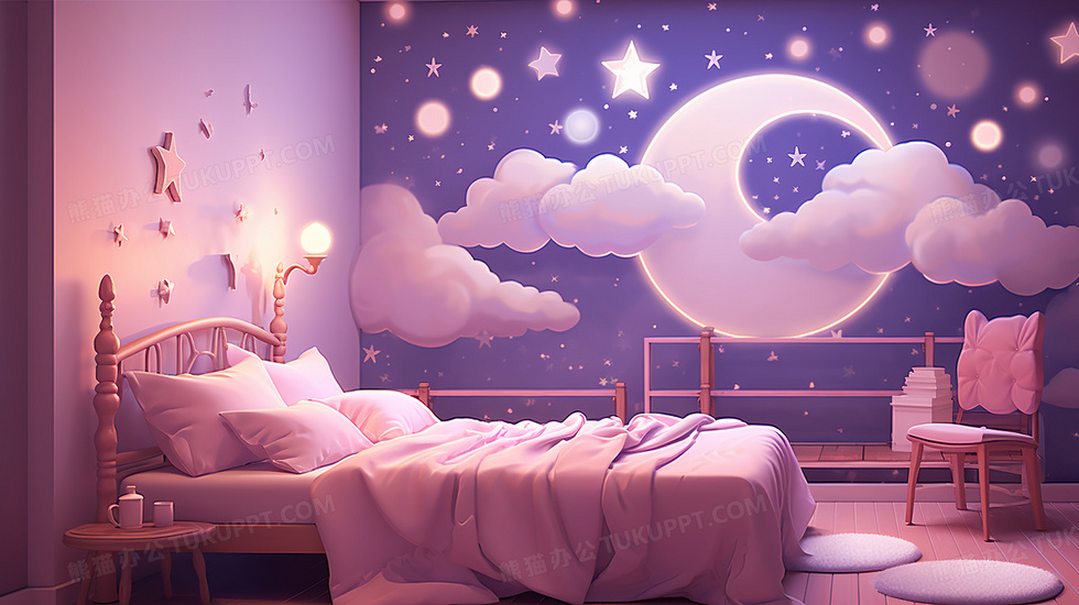 本作品内容为紫色梦幻星星云彩渐变唯美室内卧室卡通插画, 格式为 jpg, 大小20 MB, 图片尺寸为5824 x 3264, 源文件无水印, 欢迎使用熊猫办公。 如认为平台内容涉嫌侵权,可通过邮件:tousu@tukuppt.com提出书面通知,我们将及时处理。