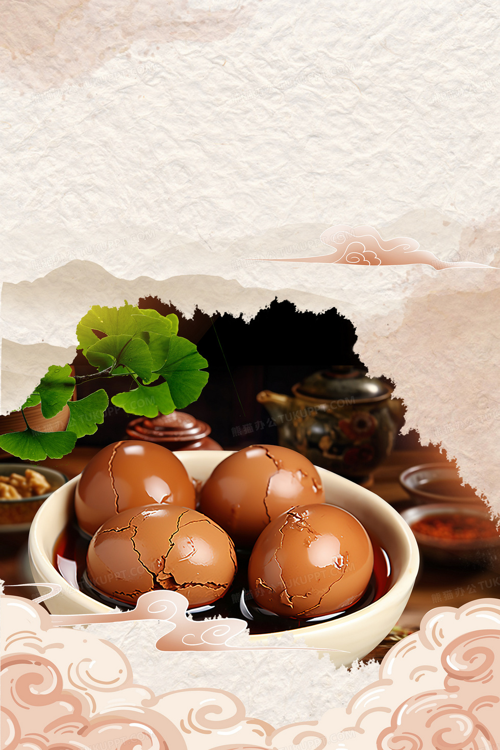 本作品内容为传统美食茶叶蛋中国风美食背景, 格式为 psd, 大小102 MB, 图片尺寸为3543 x 5315, 作品中背景图片无需修改, 源文件无水印,可以直接使用, 欢迎使用熊猫办公。 如认为平台内容涉嫌侵权,可通过邮件:tousu@tukuppt.com提出书面通知,我们将及时处理。