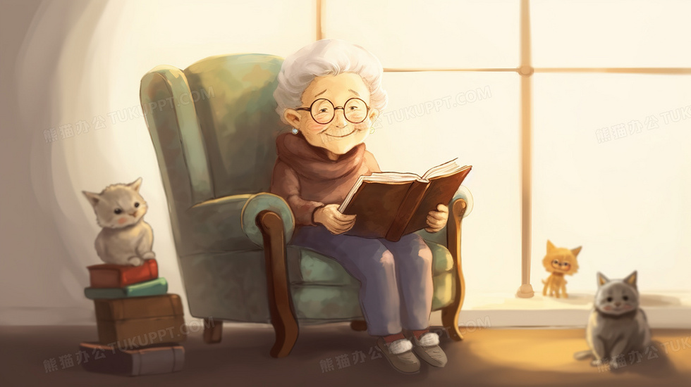 本作品内容为坐在沙发上读书的老奶奶插画, 格式为 jpg, 大小5 MB, 图片尺寸为2912 x 1632, 源文件无水印, 欢迎使用熊猫办公。 如认为平台内容涉嫌侵权,可通过邮件:tousu@tukuppt.com提出书面通知,我们将及时处理。