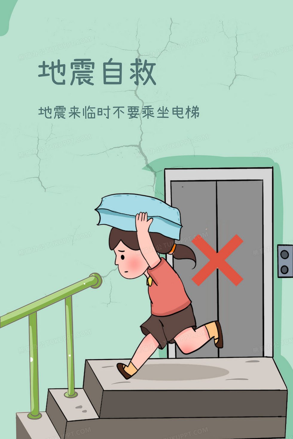 本作品内容为地震自救逃生指南之走楼梯插画, 格式为 psd, 大小6 MB, 请使用软件PhotoShop(CC)打开, 源文件无水印, 欢迎使用熊猫办公。 如认为平台内容涉嫌侵权,可通过邮件:tousu@tukuppt.com提出书面通知,我们将及时处理。