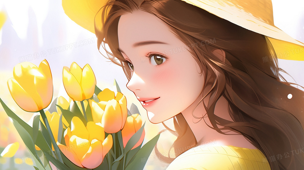 本作品内容为春季阳光下拿着鲜花的女孩插画, 格式为 jpg, 大小2 MB, 图片尺寸为2912 x 1632, 源文件无水印, 欢迎使用熊猫办公。 如认为平台内容涉嫌侵权,可通过邮件:tousu@tukuppt.com提出书面通知,我们将及时处理。