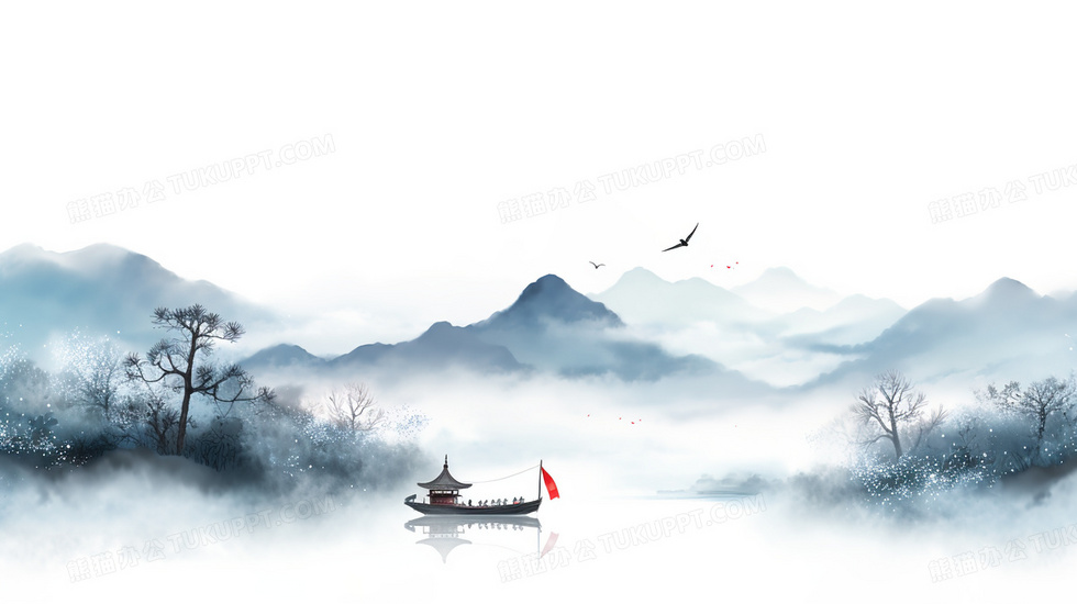 本作品内容为中国风江上泛舟山水水墨风景插画, 格式为 jpg, 大小4 MB, 图片尺寸为2912 x 1632, 源文件无水印, 欢迎使用熊猫办公。 如认为平台内容涉嫌侵权,可通过邮件:tousu@tukuppt.com提出书面通知,我们将及时处理。