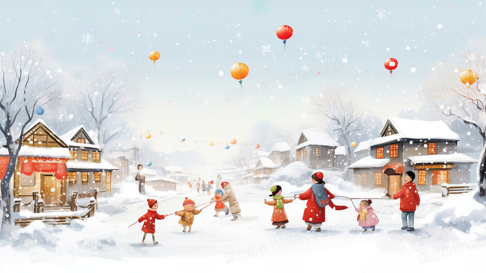 本作品内容为冬季新年寒假回老家玩耍的孩子插画, 格式为 jpg, 大小5 MB, 图片尺寸为2912 x 1632, 源文件无水印, 欢迎使用熊猫办公。 如认为平台内容涉嫌侵权,可通过邮件:tousu@tukuppt.com提出书面通知,我们将及时处理。