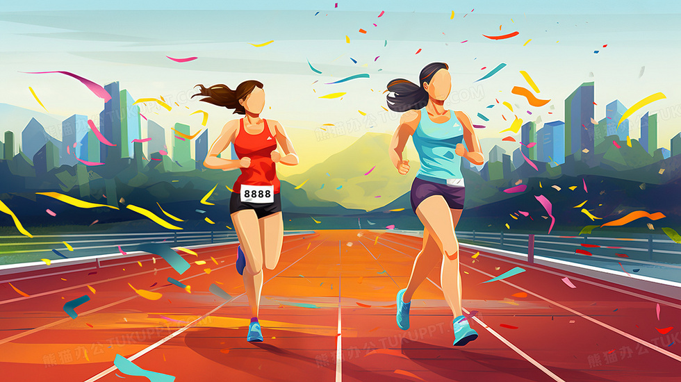 本作品内容为运动员们在跑道上激烈的比拼插画, 格式为 jpg, 大小6 MB, 图片尺寸为2912 x 1632, 源文件无水印, 欢迎使用熊猫办公。 如认为平台内容涉嫌侵权,可通过邮件:tousu@tukuppt.com提出书面通知,我们将及时处理。