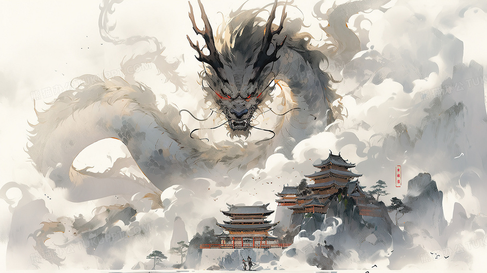 本作品内容为国潮水墨中国风龙插画, 格式为 jpg, 大小7 MB, 图片尺寸为2912 x 1632, 源文件无水印, 欢迎使用熊猫办公。 如认为平台内容涉嫌侵权,可通过邮件:tousu@tukuppt.com提出书面通知,我们将及时处理。