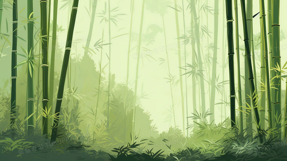 本作品内容为茂密翠绿的竹林插画, 格式为 jpg, 大小3 MB, 图片尺寸为2912 x 1632, 源文件无水印, 欢迎使用熊猫办公。 如认为平台内容涉嫌侵权,可通过邮件:tousu@tukuppt.com提出书面通知,我们将及时处理。