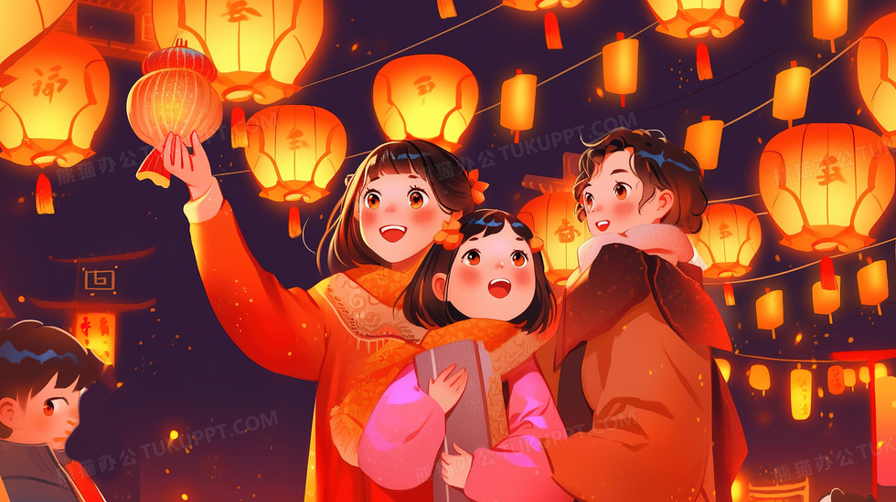 本作品内容为古镇春节在集市快乐赏花灯猜灯谜的人们插画, 格式为 jpg, 大小3 MB, 图片尺寸为2912 x 1632, 源文件无水印, 欢迎使用熊猫办公。 如认为平台内容涉嫌侵权,可通过邮件:tousu@tukuppt.com提出书面通知,我们将及时处理。