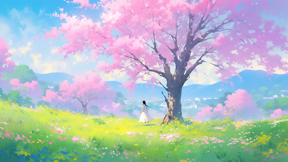 本作品内容为春季粉色草地上的大树插画, 格式为 jpg, 大小3 MB, 图片尺寸为2912 x 1632, 源文件无水印, 欢迎使用熊猫办公。 如认为平台内容涉嫌侵权,可通过邮件:tousu@tukuppt.com提出书面通知,我们将及时处理。