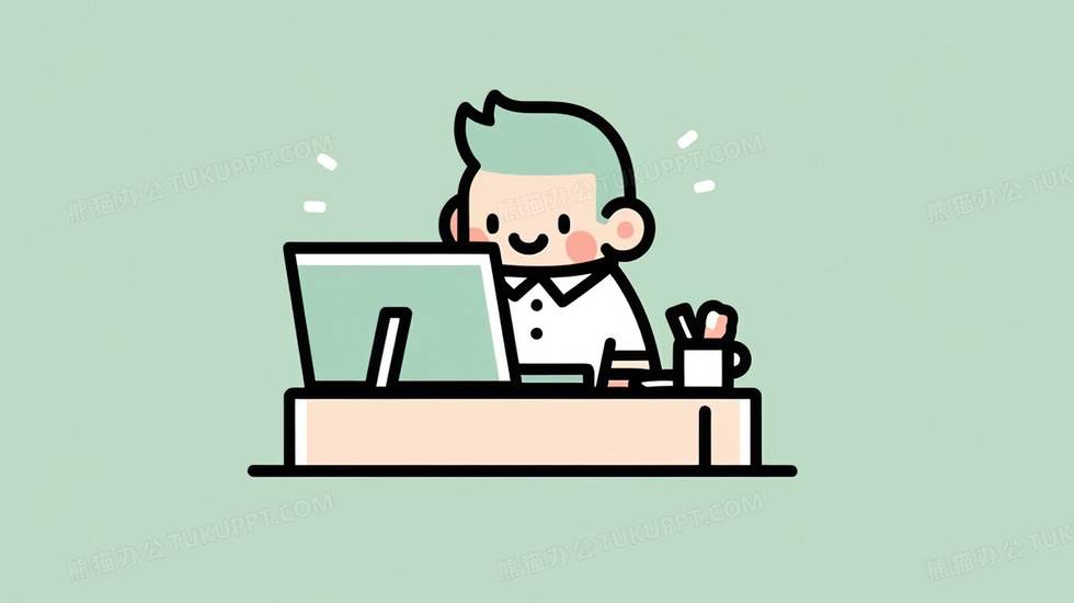 本作品内容为电脑前工作的男士插画, 格式为 jpg, 大小1 MB, 图片尺寸为2912 x 1632, 源文件无水印, 欢迎使用熊猫办公。 如认为平台内容涉嫌侵权,可通过邮件:tousu@tukuppt.com提出书面通知,我们将及时处理。