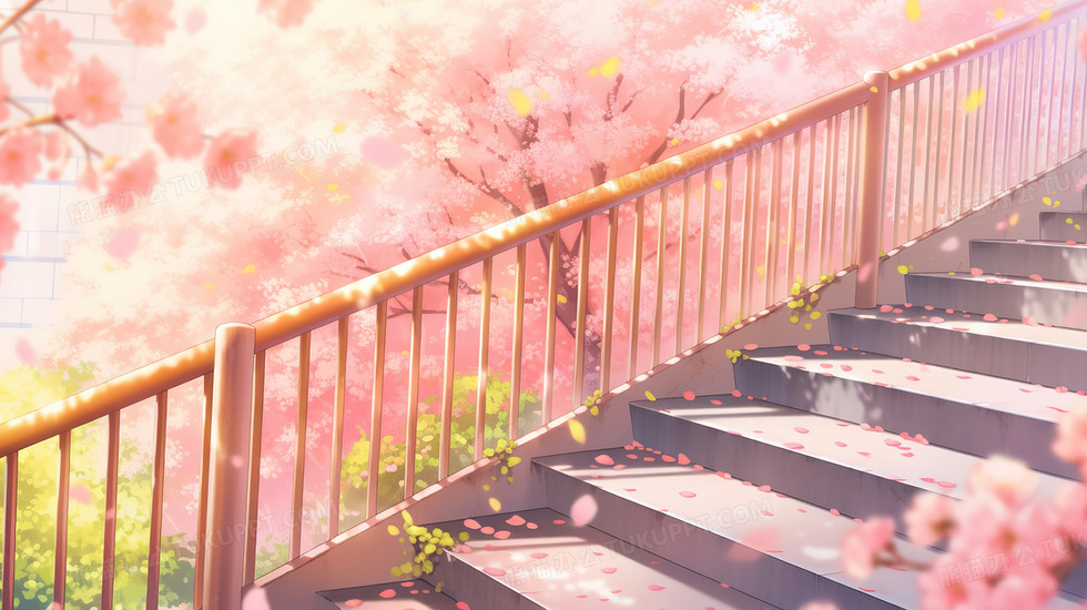本作品内容为春季樱花树林旁的楼梯插画, 格式为 jpg, 大小3 MB, 图片尺寸为2912 x 1632, 源文件无水印, 欢迎使用熊猫办公。 如认为平台内容涉嫌侵权,可通过邮件:tousu@tukuppt.com提出书面通知,我们将及时处理。
