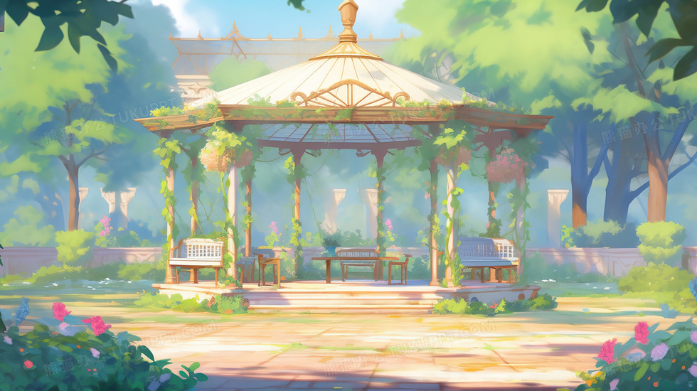 本作品内容为春季公园里精致的凉亭插画, 格式为 jpg, 大小3 MB, 图片尺寸为2912 x 1632, 源文件无水印, 欢迎使用熊猫办公。 如认为平台内容涉嫌侵权,可通过邮件:tousu@tukuppt.com提出书面通知,我们将及时处理。