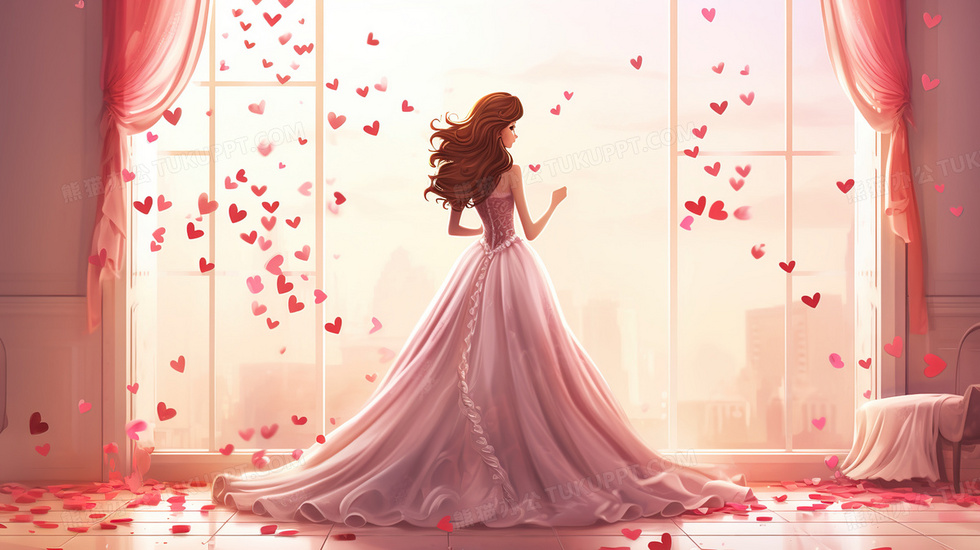 本作品内容为粉色情人节穿婚纱的女孩插画, 格式为 jpg, 大小4 MB, 图片尺寸为2912 x 1632, 源文件无水印, 欢迎使用熊猫办公。 如认为平台内容涉嫌侵权,可通过邮件:tousu@tukuppt.com提出书面通知,我们将及时处理。
