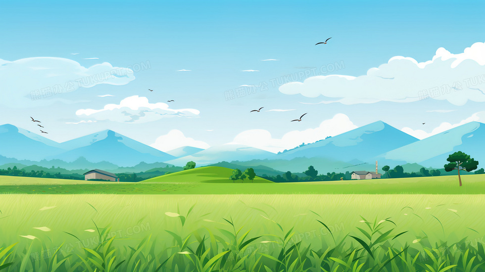 本作品内容为春季山边翠绿辽阔的水稻田插画, 格式为 jpg, 大小4 MB, 图片尺寸为2912 x 1632, 源文件无水印, 欢迎使用熊猫办公。 如认为平台内容涉嫌侵权,可通过邮件:tousu@tukuppt.com提出书面通知,我们将及时处理。