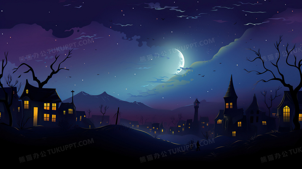 本作品内容为唯美星空夜晚乡村风景插画, 格式为 jpg, 大小4 MB, 图片尺寸为2912 x 1632, 源文件无水印, 欢迎使用熊猫办公。 如认为平台内容涉嫌侵权,可通过邮件:tousu@tukuppt.com提出书面通知,我们将及时处理。