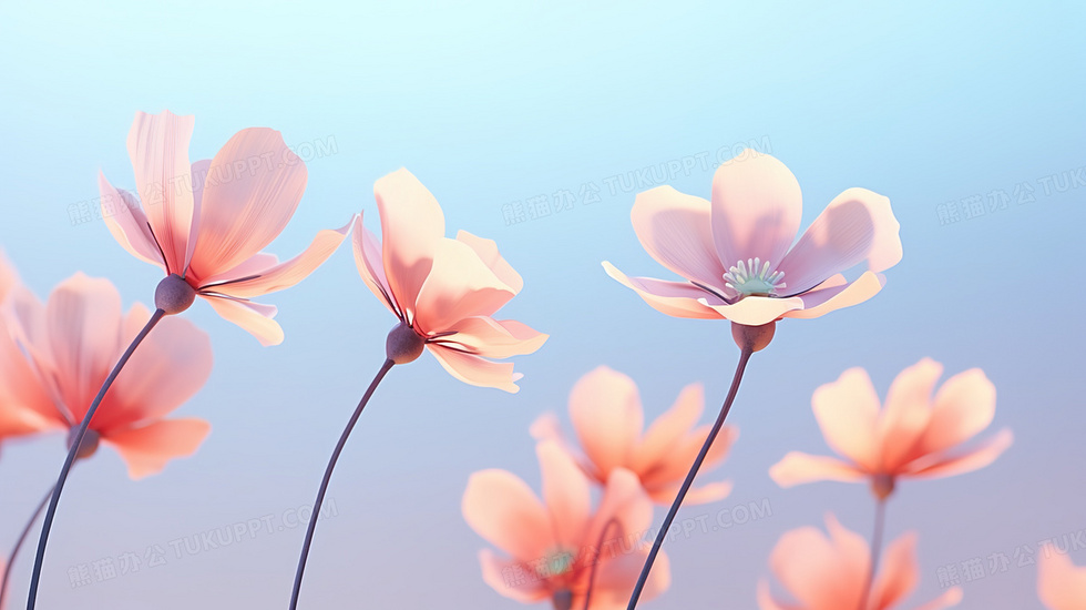 首页 > 插画 > 科技艺术 > 唯美清新 > 简约蓝天背景下的花朵插画