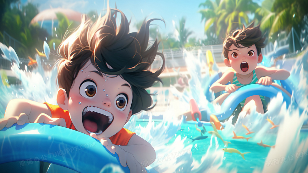 本作品内容为可爱的孩子们在夏日水上乐园开心的玩耍创意插画, 格式为 jpg, 大小3 MB, 图片尺寸为2912 x 1632, 源文件无水印, 欢迎使用熊猫办公。 如认为平台内容涉嫌侵权,可通过邮件:tousu@tukuppt.com提出书面通知,我们将及时处理。