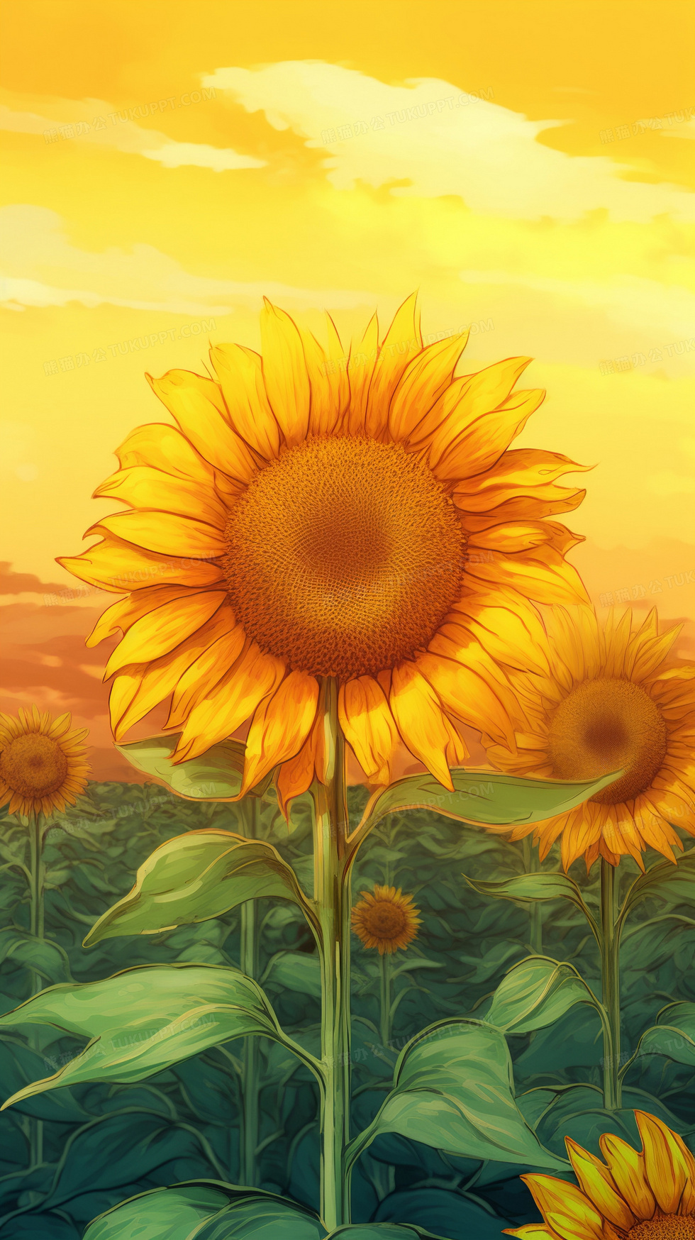 本作品内容为绚丽的向日葵插画图片, 格式为 jpg, 大小3 MB, 图片尺寸为1632 x 2912, 源文件无水印, 欢迎使用熊猫办公。 如认为平台内容涉嫌侵权,可通过邮件:tousu@tukuppt.com提出书面通知,我们将及时处理。
