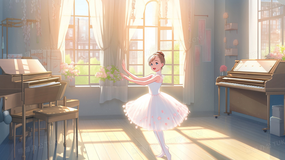 本作品内容为卡通风可爱女孩在练习芭蕾舞创意插画, 格式为 jpg, 大小2 MB, 图片尺寸为2912 x 1632, 源文件无水印, 欢迎使用熊猫办公。 如认为平台内容涉嫌侵权,可通过邮件:tousu@tukuppt.com提出书面通知,我们将及时处理。