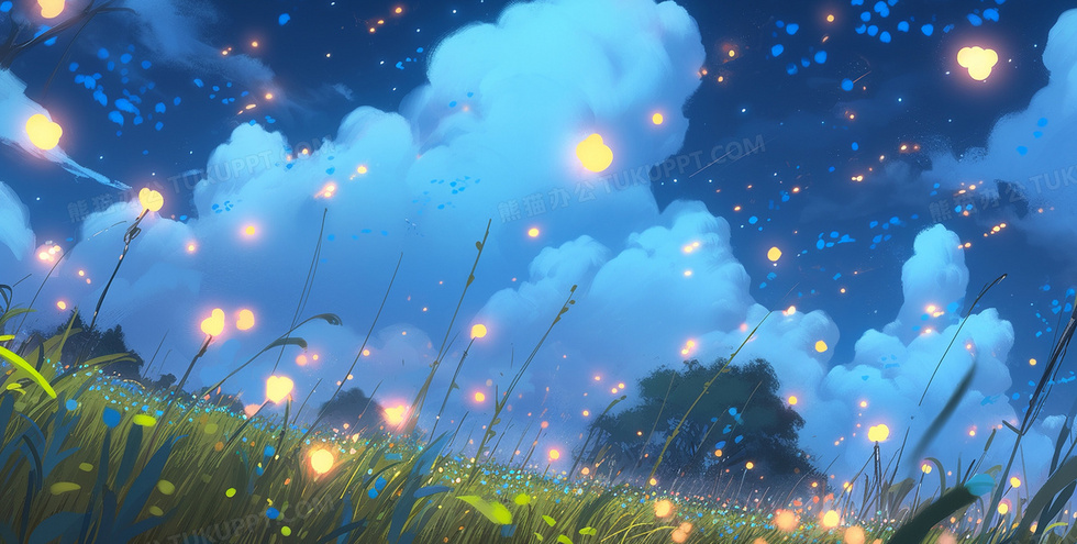 本作品内容为唯美梦幻萤火虫森林创意插画, 格式为 jpg, 大小3 MB, 图片尺寸为2912 x 1470, 源文件无水印, 欢迎使用熊猫办公。 如认为平台内容涉嫌侵权,可通过邮件:tousu@tukuppt.com提出书面通知,我们将及时处理。