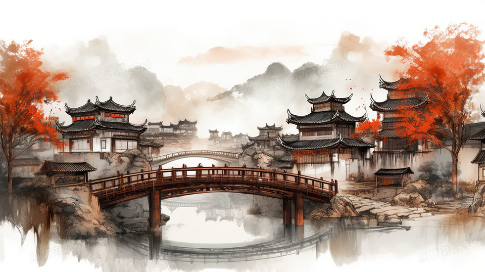 本作品内容为江南水乡古镇插画, 格式为 jpg, 大小7 MB, 图片尺寸为2912 x 1632, 源文件无水印, 欢迎使用熊猫办公。 如认为平台内容涉嫌侵权,可通过邮件:tousu@tukuppt.com提出书面通知,我们将及时处理。