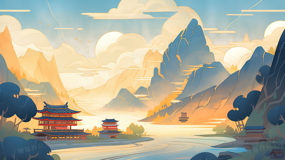 本作品内容为创意国潮中国风山水风景画, 格式为 jpg, 大小7 MB, 图片尺寸为2912 x 1632, 源文件无水印, 欢迎使用熊猫办公。 如认为平台内容涉嫌侵权,可通过邮件:tousu@tukuppt.com提出书面通知,我们将及时处理。