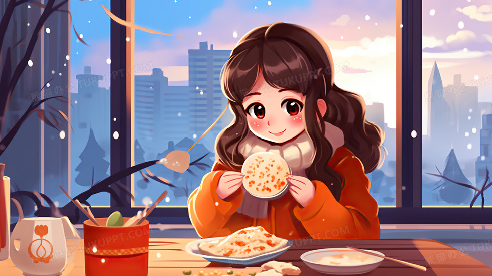 本作品内容为冬天女孩在室内饮食保暖插画, 格式为 jpg, 大小5 MB, 图片尺寸为2912 x 1632, 源文件无水印, 欢迎使用熊猫办公。 如认为平台内容涉嫌侵权,可通过邮件:tousu@tukuppt.com提出书面通知,我们将及时处理。