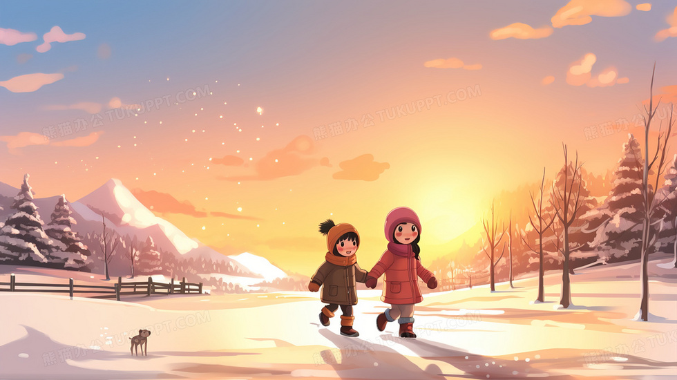 本作品内容为雪地里手牵手玩耍的儿童插画, 格式为 jpg, 大小4 MB, 图片尺寸为2912 x 1632, 源文件无水印, 欢迎使用熊猫办公。 如认为平台内容涉嫌侵权,可通过邮件:tousu@tukuppt.com提出书面通知,我们将及时处理。