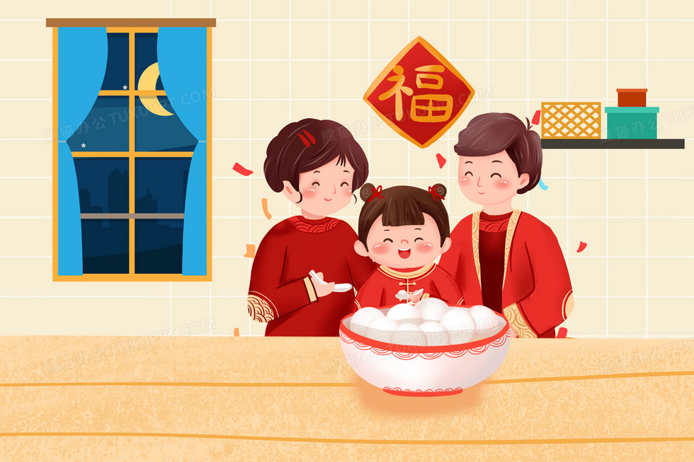 本作品内容为立冬一家人一起吃汤圆插画, 格式为 psd, 大小32 MB, 请使用软件PhotoShop(CC)打开, 源文件无水印, 欢迎使用熊猫办公。 如认为平台内容涉嫌侵权,可通过邮件:tousu@tukuppt.com提出书面通知,我们将及时处理。