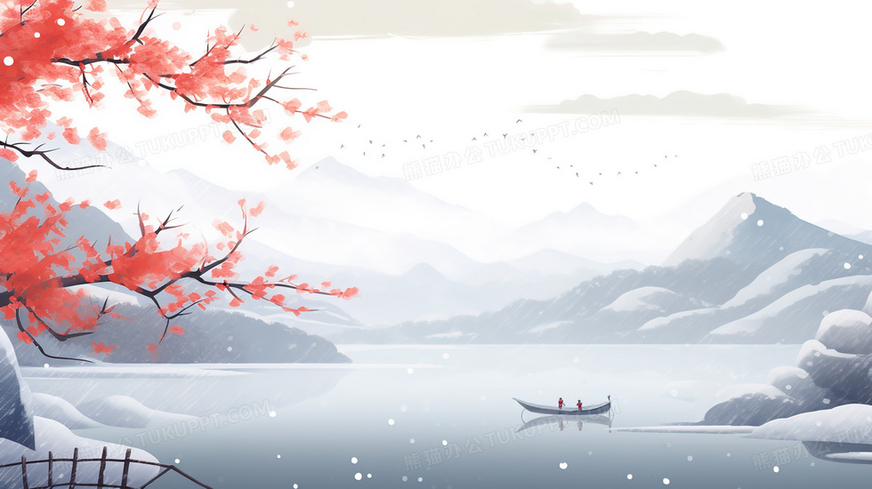 本作品内容为冬天下雪山水水墨插画, 格式为 jpg, 大小4 MB, 图片尺寸为2912 x 1632, 源文件无水印, 欢迎使用熊猫办公。 如认为平台内容涉嫌侵权,可通过邮件:tousu@tukuppt.com提出书面通知,我们将及时处理。