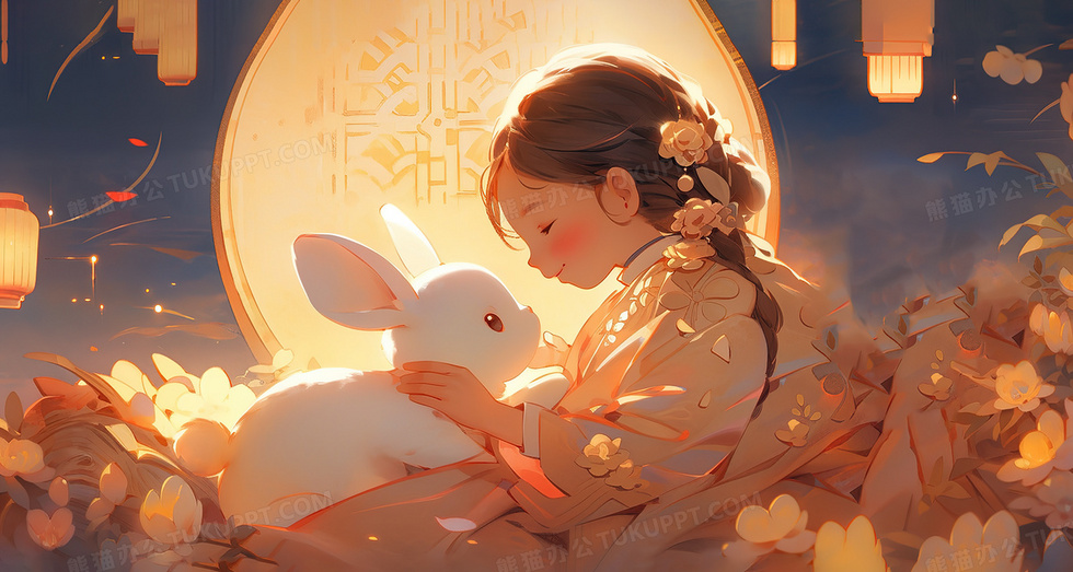 本作品内容为中秋节月光下的嫦娥和玉兔插画, 格式为 jpg, 大小6 MB, 图片尺寸为2912 x 1556, 源文件无水印, 欢迎使用熊猫办公。 如认为平台内容涉嫌侵权,可通过邮件:tousu@tukuppt.com提出书面通知,我们将及时处理。