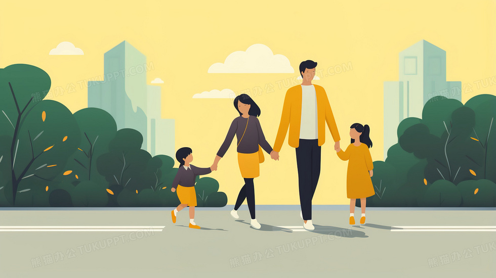 本作品内容为牵着手在户外散步的一家人风景插画, 格式为 jpg, 大小4 MB, 图片尺寸为2912 x 1632, 源文件无水印, 欢迎使用熊猫办公。 如认为平台内容涉嫌侵权,可通过邮件:tousu@tukuppt.com提出书面通知,我们将及时处理。