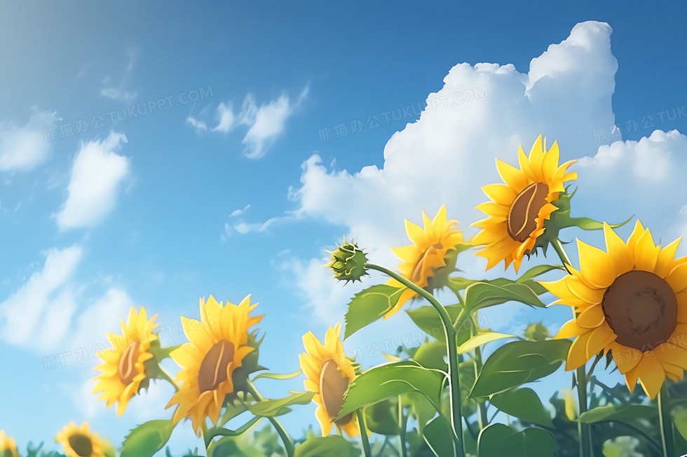 本作品内容为清新大片的向日葵和蓝天白云, 格式为 jpg, 大小3 MB, 图片尺寸为2688 x 1792, 源文件无水印, 欢迎使用熊猫办公。 如认为平台内容涉嫌侵权,可通过邮件:tousu@tukuppt.com提出书面通知,我们将及时处理。
