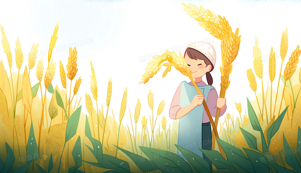 本作品内容为卡通戴帽子的农民举着麦穗站在麦田里插画, 格式为 jpg, 大小3 MB, 图片尺寸为2688 x 1544, 源文件无水印, 欢迎使用熊猫办公。 如认为平台内容涉嫌侵权,可通过邮件:tousu@tukuppt.com提出书面通知,我们将及时处理。