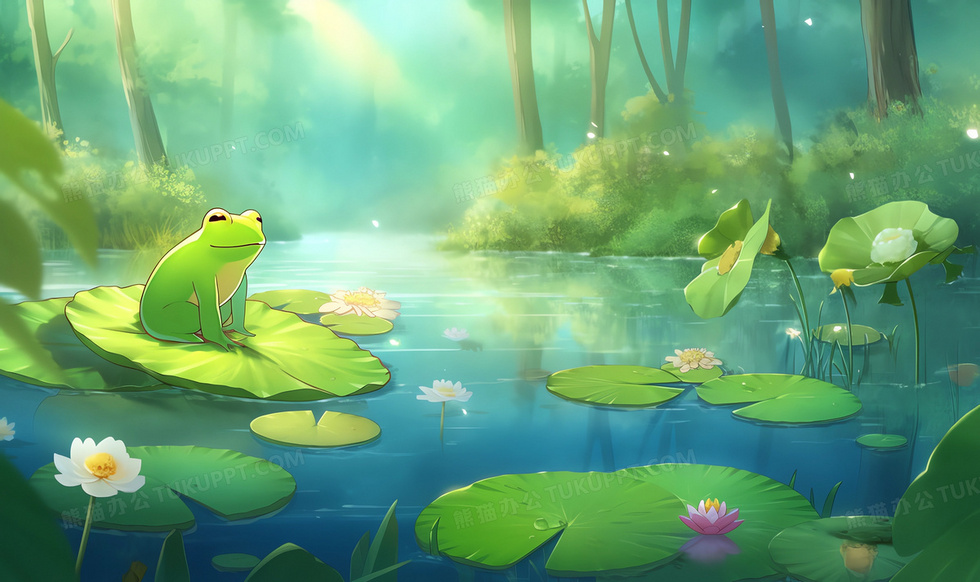 本作品内容为卡通风夏日荷塘的青蛙插图, 格式为 jpg, 大小3 MB, 图片尺寸为2688 x 1596, 源文件无水印, 欢迎使用熊猫办公。 如认为平台内容涉嫌侵权,可通过邮件:tousu@tukuppt.com提出书面通知,我们将及时处理。