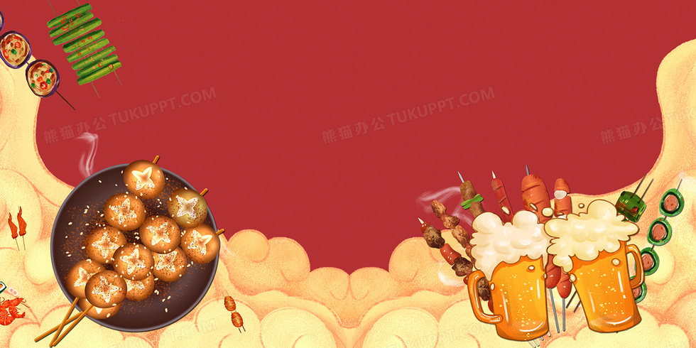 本作品内容为红色食物烧烤背景, 格式为 psd, 大小69 MB, 图片尺寸为4722 x 2361, 作品中背景图片无需修改, 源文件无水印,可以直接使用, 欢迎使用熊猫办公。 如认为平台内容涉嫌侵权,可通过邮件:tousu@tukuppt.com提出书面通知,我们将及时处理。