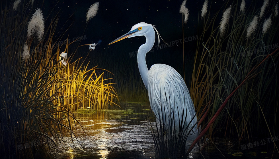 本作品内容为白鹤在湿地芦苇荡水中风景插画, 格式为 jpg, 大小6 MB, 图片尺寸为2688 x 1536, 源文件无水印, 欢迎使用熊猫办公。 如认为平台内容涉嫌侵权,可通过邮件:tousu@tukuppt.com提出书面通知,我们将及时处理。