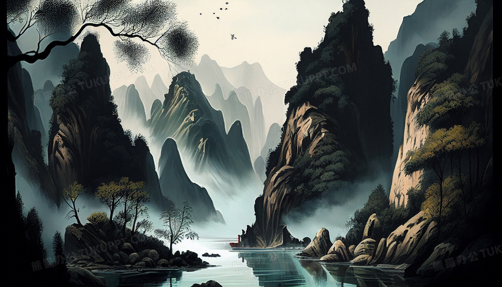 本作品内容为水墨山水画千里江山图古风插画, 格式为 jpg, 大小8 MB, 图片尺寸为2688 x 1536, 源文件无水印, 欢迎使用熊猫办公。 如认为平台内容涉嫌侵权,可通过邮件:tousu@tukuppt.com提出书面通知,我们将及时处理。