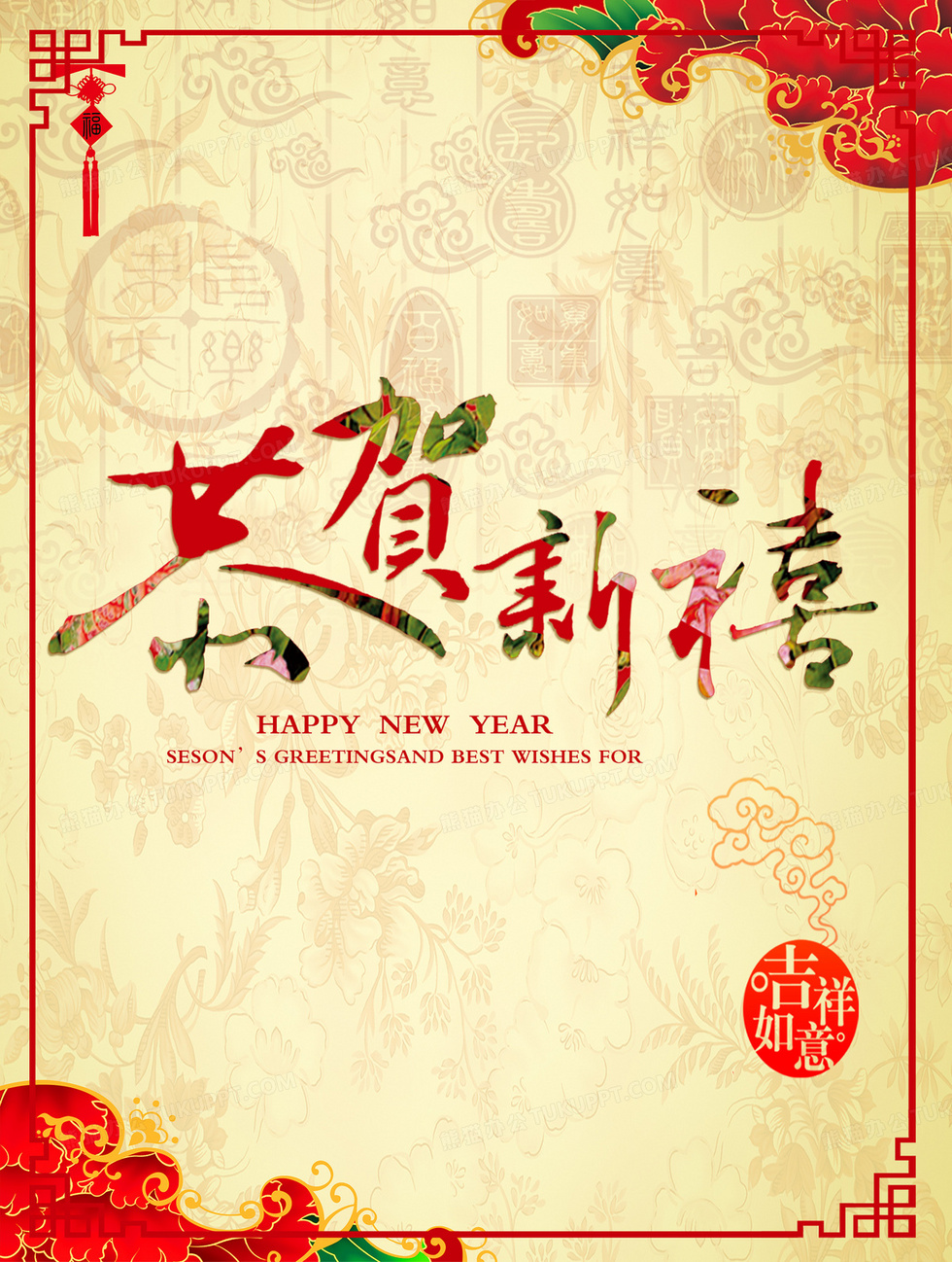 本作品内容为恭贺新禧海报背景, 格式为 psd, 图片尺寸为2551 x 3378, 作品中背景图片无需修改, 源文件无水印,可以直接使用, 欢迎使用熊猫办公。 如认为平台内容涉嫌侵权,可通过邮件:tousu@tukuppt.com提出书面通知,我们将及时处理。