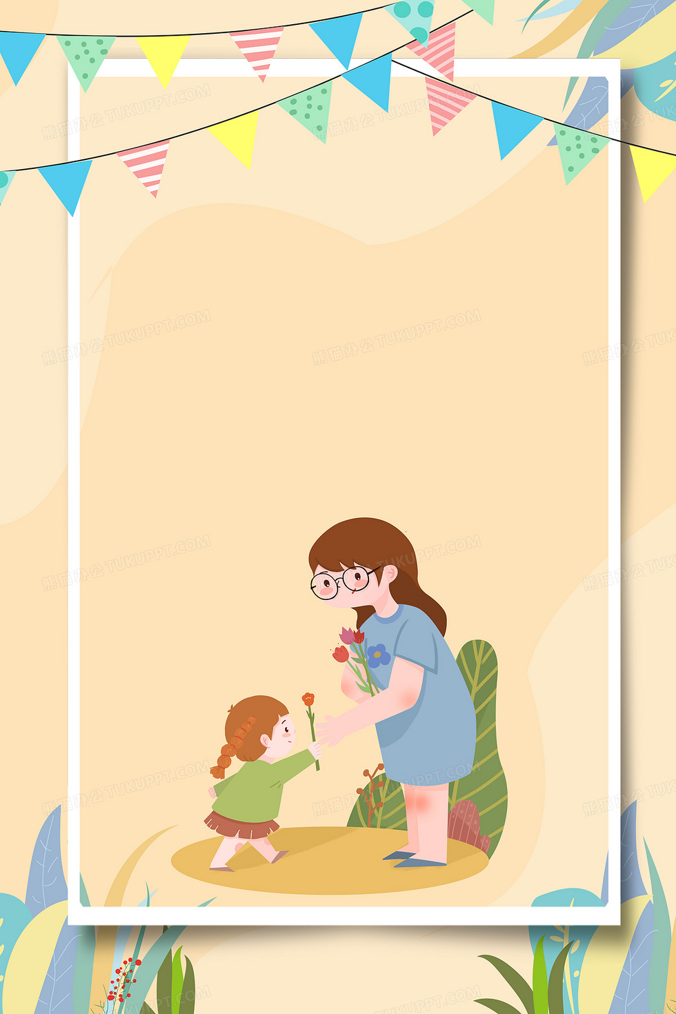 本作品内容为学生送花教师节卡通小清新背景, 格式为 psd, 大小14 MB, 图片尺寸为7086 x 10631, 作品中背景图片无需修改, 源文件无水印,可以直接使用, 欢迎使用熊猫办公。 如认为平台内容涉嫌侵权,可通过邮件:tousu@tukuppt.com提出书面通知,我们将及时处理。
