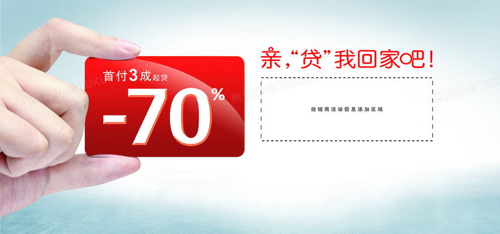 本作品内容为贷款宣传, 格式为 ai, 图片尺寸为1920 x 900, 作品中背景图片无需修改, 源文件无水印,可以直接使用, 欢迎使用熊猫办公。 如认为平台内容涉嫌侵权,可通过邮件:tousu@tukuppt.com提出书面通知,我们将及时处理。