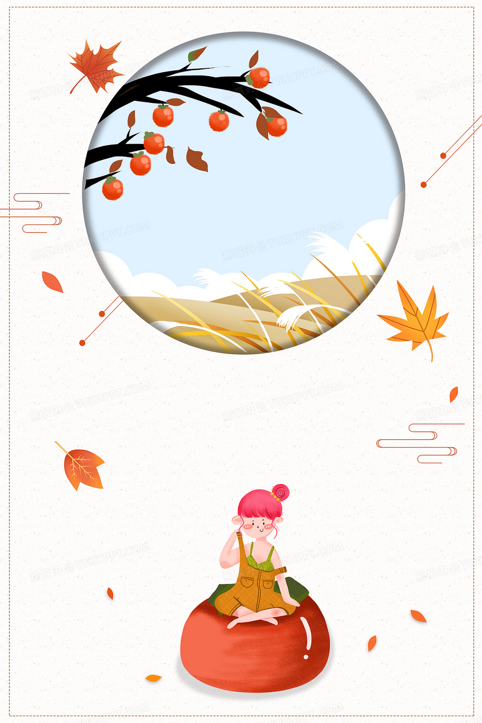 本作品内容为霜降清新卡通女孩二十四节气背景, 格式为 psd, 大小92 MB, 图片尺寸为7086 x 10631, 作品中背景图片无需修改, 源文件无水印,可以直接使用, 欢迎使用熊猫办公。 如认为平台内容涉嫌侵权,可通过邮件:tousu@tukuppt.com提出书面通知,我们将及时处理。